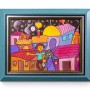 The composition of the painting is composed of houses of various shapes, shrouded in a beautiful starry night sky. The houses have fantastic shapes, colorful and bright, full of fairy tale style. Two characters appeared in the center of the painting, a man opens his arms tries to hug the woman under the starry night sky. LiLY H ART GALLERY is pleased to present this romantic and sweet painting to you.